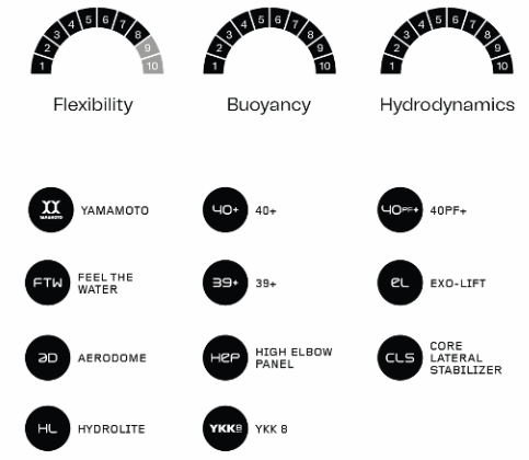 The thinner upper body stretch 2mm composition allows for shoulder freedom